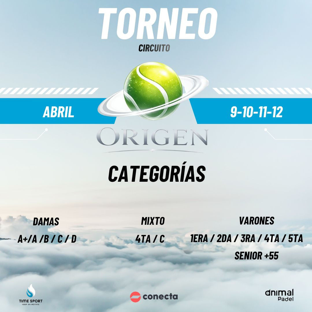 Torneo Summer Timesport y Animal Padel Tour La dehesa Sede: Conecta La Dehesa (Luis Bascuñán 1858) Fecha: 23 al 25 de enero Categorías 1era Masculina 2da Masculina 3era Masculin 4ta Masculina 5ta Masculina A+ A B C D Mixto C (4ta/C) Valor Inscripción 70.000 La pareja
