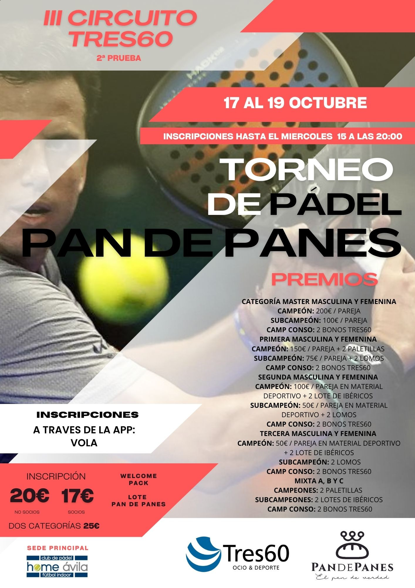 Tres60 es la oferta de ocio y deporte más grande de la ciudad de Ávila, con más de 9000 metros cuadrados indoor divididos en dos instalaciones, Tres60 Ocio y Deporte y Home Pádel Ávila, con multitud de servicios y actividades. TRES60 OCIO Y DEPORTE - 6 PISTAS DE PÁDEL - GIMNASIO + CON 4 SALAS DE CLASES - SALA ENTRENAMIENTO FUNCIONAL - 2 PARQUES INFANTILES - CAFETERÍA RESTAURANTE - SALA DE EVENTOS HOME PÁDEL ÁVILA - 8 PISTAS DE PADEL - CAMPO DE FÚTBOL INDOOR - SALA POLIVALENTE - ZONA INFANTIL - CAFETERÍA Tres60 es la oferta de ocio y deporte más grande de la ciudad de Ávila, con más de 9000 metros cuadrados indoor divididos en dos instalaciones, Tres60 Ocio y Deporte y Home Pádel Ávila, con multitud de servicios y actividades. - 6 PISTAS DE PÁDEL - GIMNASIO + CON 4 SALAS DE CLASES - SALA ENTRENAMIENTO FUNCIONAL - 2 PARQUES INFANTILES - CAFETERÍA RESTAURANTE - SALA DE EVENTOS HOME PÁDEL ÁVILA - 8 PISTAS DE PADEL - CAMPO DE FÚTBOL INDOOR - SALA POLIVALENTE - ZONA INFANTIL - CAFETERÍA