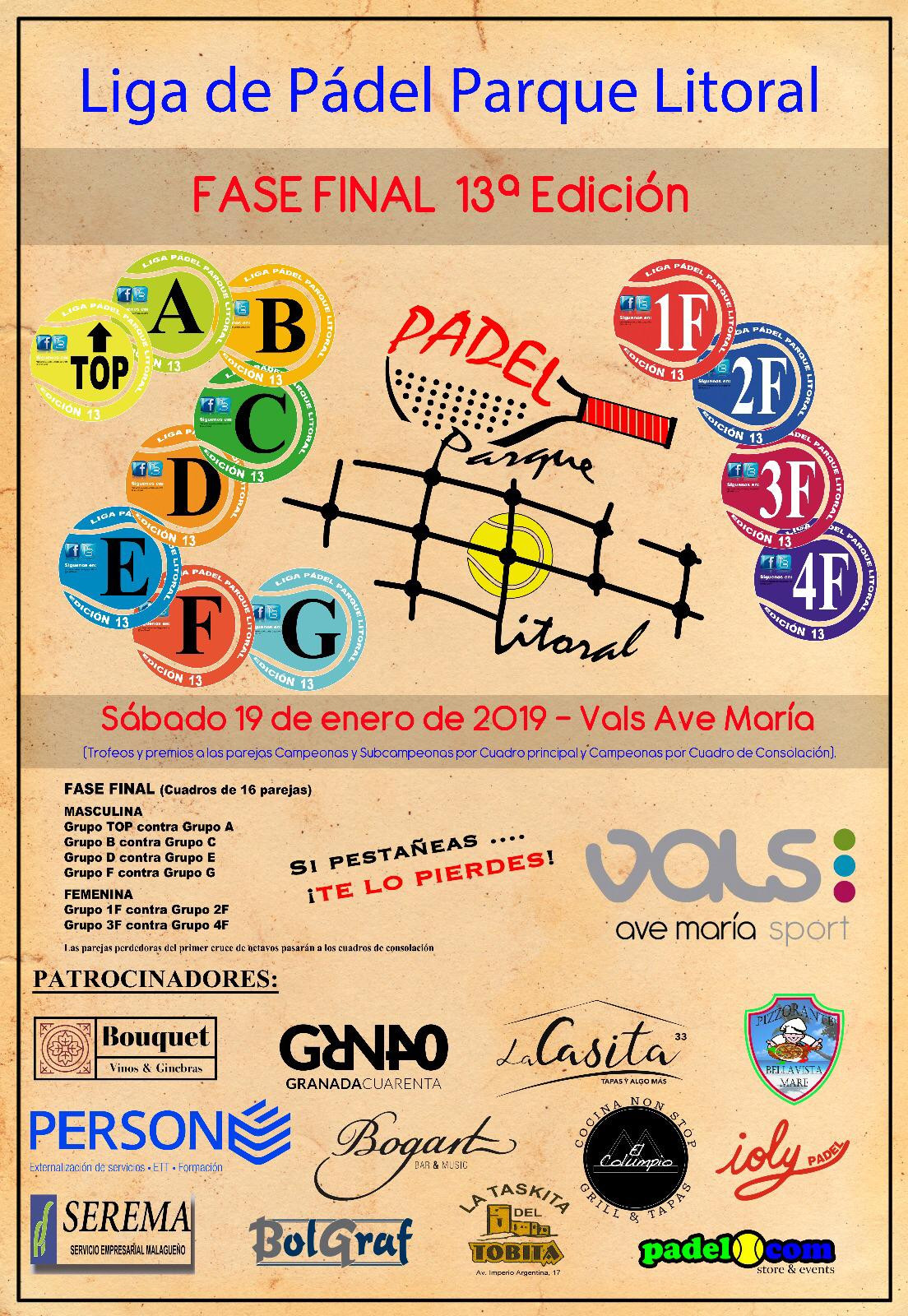 FASE FINAL LIGA PÁDEL PARQUE LITORAL 13ª EDICIÓN