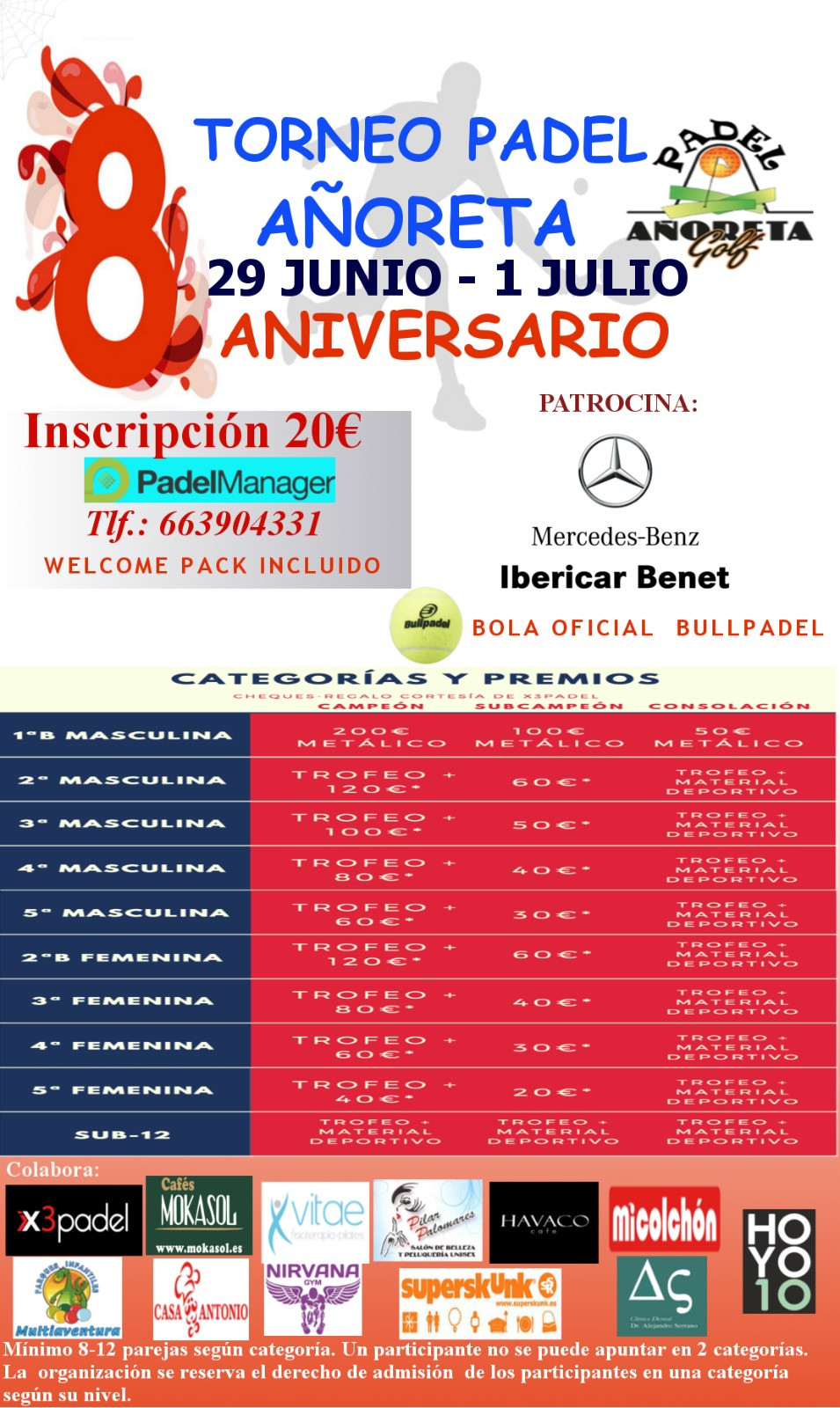 TORNEO 8º ANIVERSARIO AÑORETA PADEL