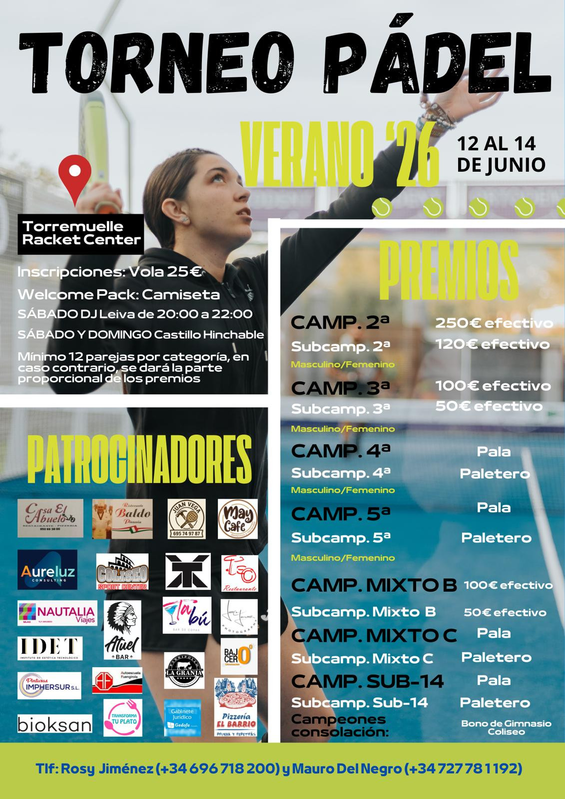 TORNEO VERANO 2026 TORREMUELLE RACKET CENTER (Queden 78 dies)