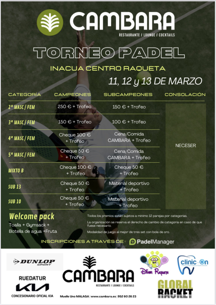 TORNEO CAMBARA 11,12 Y 13 MARZO. INACUA CENTRO RAQUETA